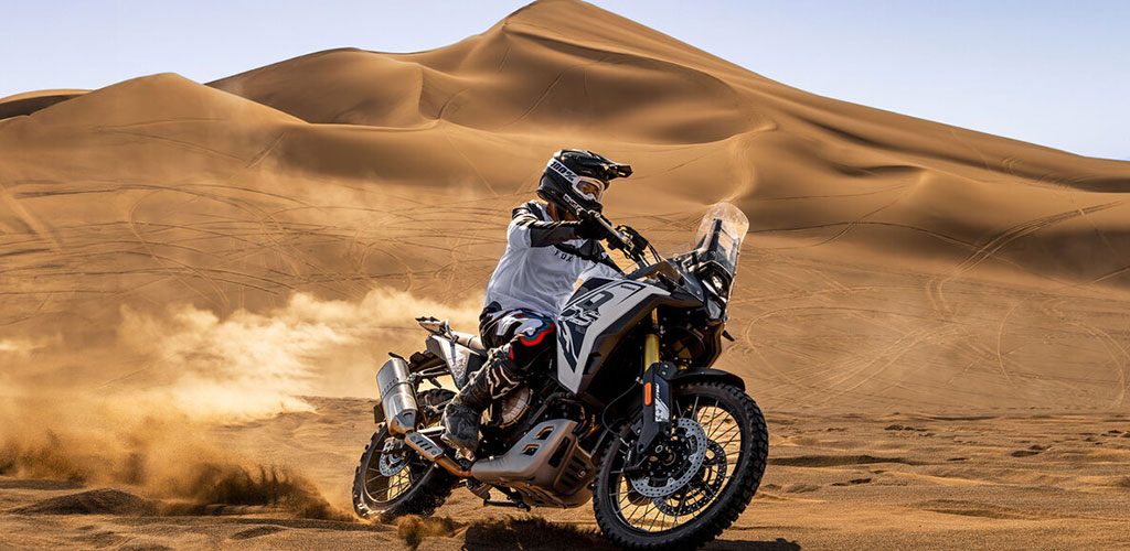 Ihr klares Design bietet volle Bewegungsfreiheit. Der auf einer idealen Höhe von 850 mm positionierte Sitz und der auf verstellbaren Erhöhungen montierte Lenker passen sich Ihrer Körperform an, während der große 24-Liter-Kraftstofftank und die sorgfältig gestaltete Verkleidung die nötige Reichweite und den Komfort auf jedem Terrain und unter allen Bedingungen garantieren.