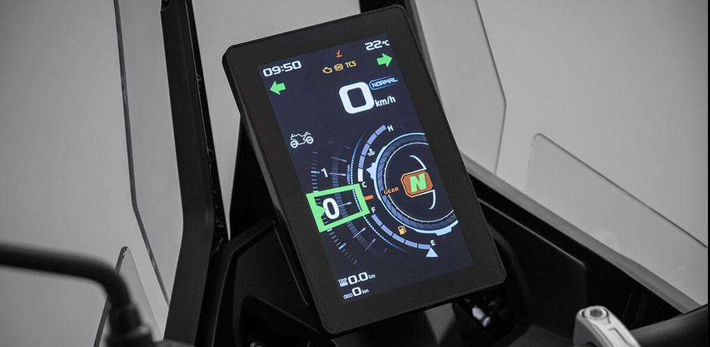 Die DS800 Rally ist mit modernster Technologie ausgestattet. Alle Systeme sind über ein großes, vertikales TFT-Display mit Smartphone-Anbindung, Bildschirmspiegelung und fortschrittlicher Navigation vom Lenker aus steuerbar. Darüber hinaus bietet sie Funktionen und Ausstattungsmerkmale, die sowohl für Abenteuer als auch für den Alltag geeignet sind.